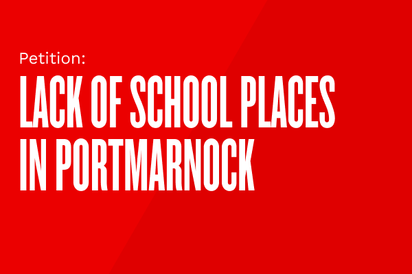 We, the undersigned parents and residents of Portmarnock, politicians and vested parties, urgently call on the Government to address the severe and ongoing shortage of primary and secondary school places in our area.